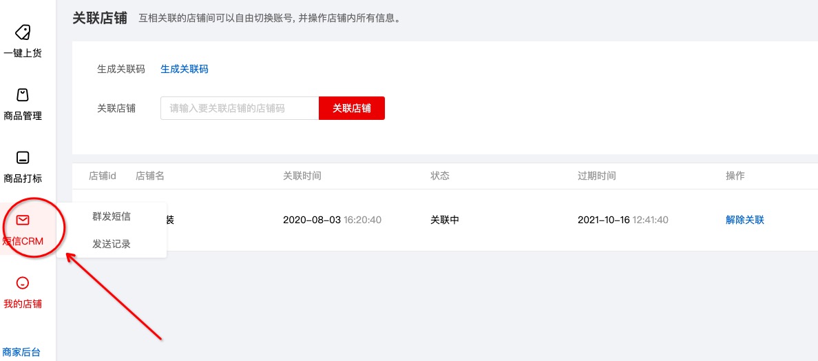 步驟一:登入歡樂逛(抖音版),點(diǎn)擊功能欄中的 “短信CRM — 群發(fā)短信”功能;