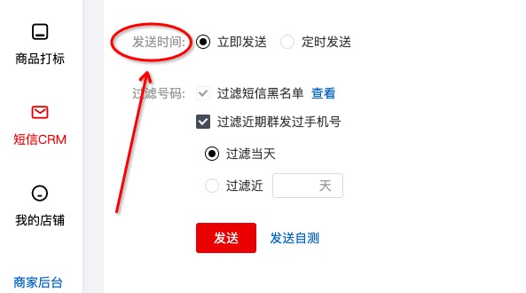 步驟四:設(shè)置短信發(fā)送時(shí)間,立即發(fā)送或者定時(shí)發(fā)送,最后點(diǎn)擊發(fā)送短信即可。